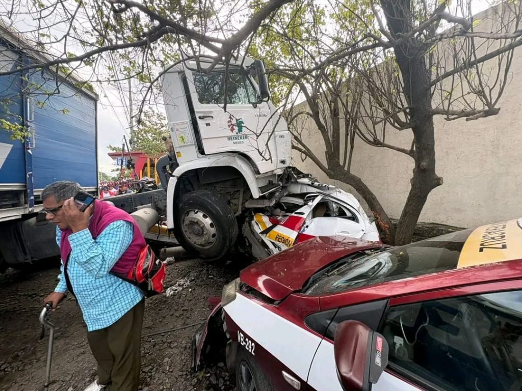 En ese momento, un tráiler de una empresa cervecera impactó a la camioneta, provocando que el conductor perdiera el control y terminara embistiendo a dos unidades de taxi que circulaban por la zona.